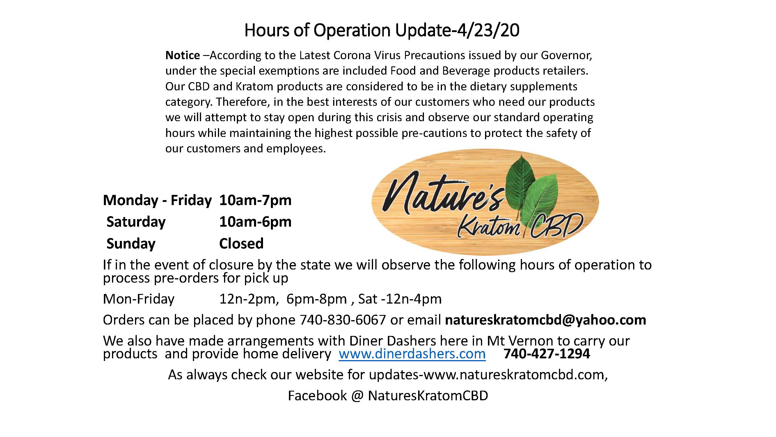 Located in the Mount Vernon, OH area Natures Kratom CBD is your source for the pure powdered Kratom products and the highest quality CBD products you can trust in Central Ohio.